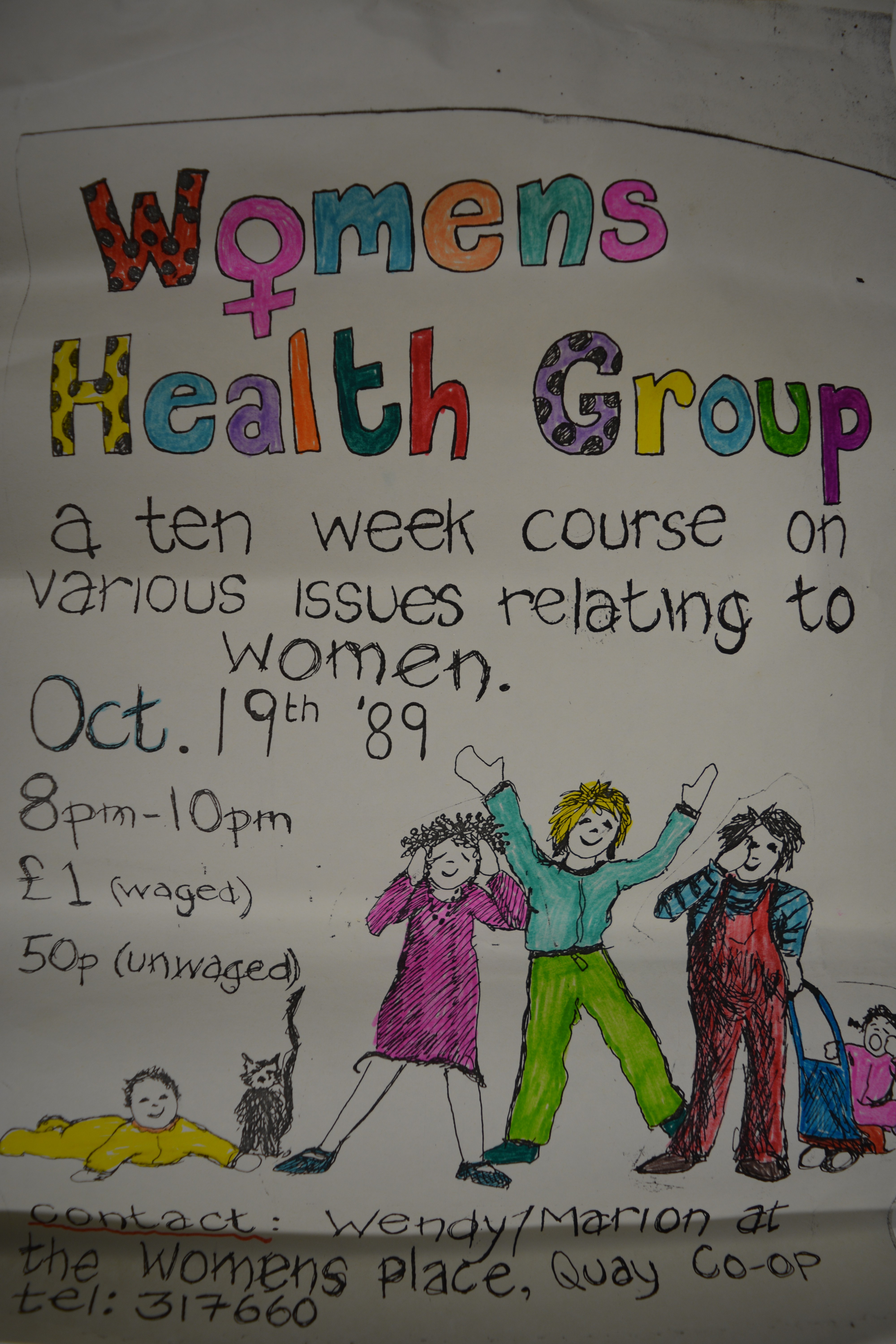 A Women’s Place was established as part of the Quay Co-op when it opened in May 1982. The Co-op Policy Document noted that “Women as the single largest ‘minority’ grouping have a special place within the Co-op.”